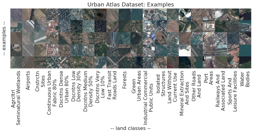 Example satellite images across the 20 original classes in the Urban Atlas survey is given in the figure below.